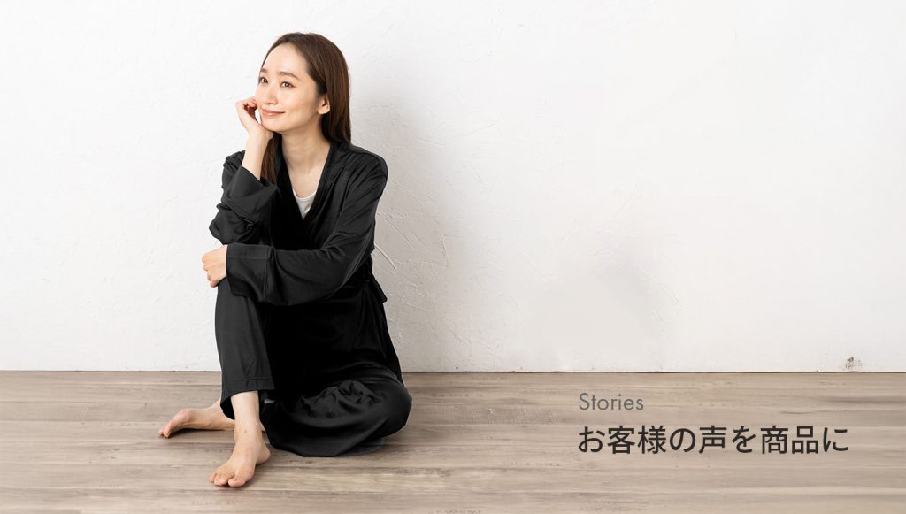 ボタンではなく紐で結んで使用できるカシュクールタイプをつくりました。見た目にもこだわり、見られても恥ずかしくないデザインに。