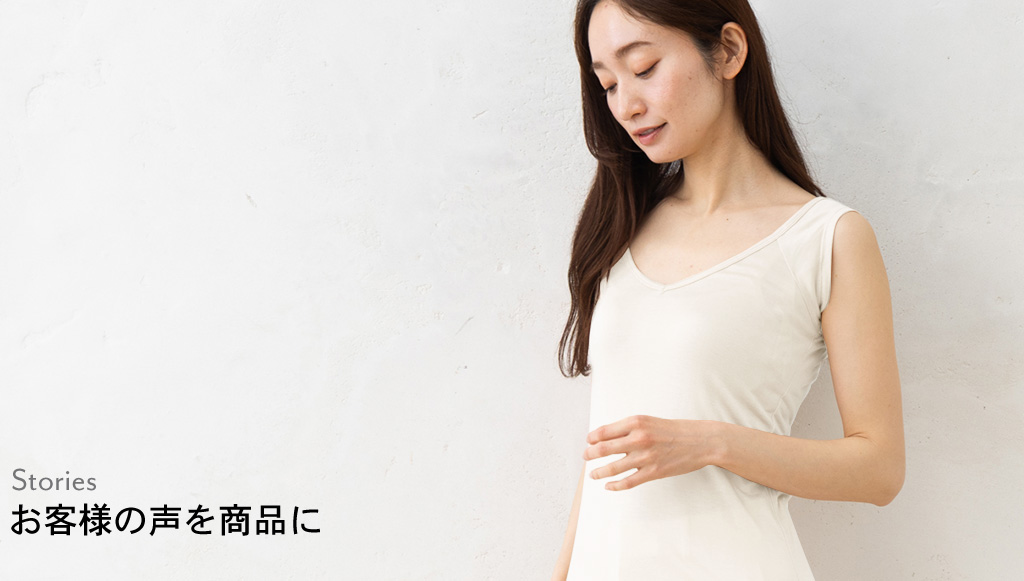 かなりの汗かきで、キャミソールだと脇や背中の汗がカバー出来ず、普段は袖があるタイプのインナーを好んで着ています。アウターの襟ぐりによってはインナーが出てしまうため、前開きが少し深いニットやシャツを着用する時のために、【Vネックタイプの汗取りインナー】があると嬉しいです。