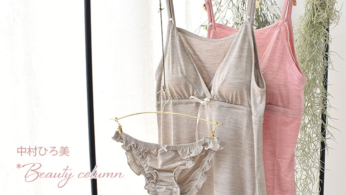 アンダーバストや肩紐の長さが調整出来るシルクカップ付きキャミソールや素材が優しいコットンシルクノンワイヤーブラなどは日中使いお勧めです。