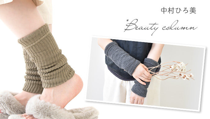 手首 | 朝晩には洗面器にお湯を張っての手浴がお勧め!特に末端に冷えを感じやすい方は冬場の習慣にしましょう。外出時は手袋の着用が好ましいのですが、スマホなどの操作がしにくいなどの不便があれば、アームウォーマーで手首から手の平までをカバーするようにしましょう。アームウォーマーは室内でも着用することで、手首の冷え予防と指先への血流促進が期待できます。手首回しや指先を動かすことも効果的です。 |