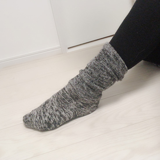 1枚でも十分温かいうえに、肌側にシルクが使われているので肌当たりがとても気持ちよく、また蒸れ知らずで快適です。足首の血流を妨げることのない緩やかなフィット感です。