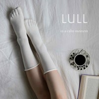 シルクには、アミノ酸由来の肌に近い保湿成分が含まれています。 素肌にやさしいうるおいに包まれて、心地よい毎日を過ごしたい。シルクに包まれる、うつくしく豊かなひとときを LULL はお届けします。 やわらかく足を包むフットケアソックス。 お風呂上りや就寝時にご使用いただけます。 指先内部のパーテーションが足指を1 本1 本包み込み、 締め付けることなく、指先を解放してリラックス。 足首からレッグ部分は透明感のある薄地に切り替わるデザインです。