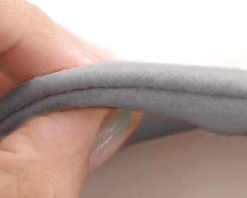 シルクをパイル状に編み立て、長谷川商店独自の起毛加工を施したシルクフリース生地。絹糸にはないソフトなウォーム感を出し、カシミアのような風合いに。繊維の細いシルクなので、ウールのようなチクチク感がなく、ふんわりソフトな肌触りに癒されます。シルク100%ですから、保湿・放湿性にも優れ、幅広いシーズンでご着用いただけます。透け感はありません。