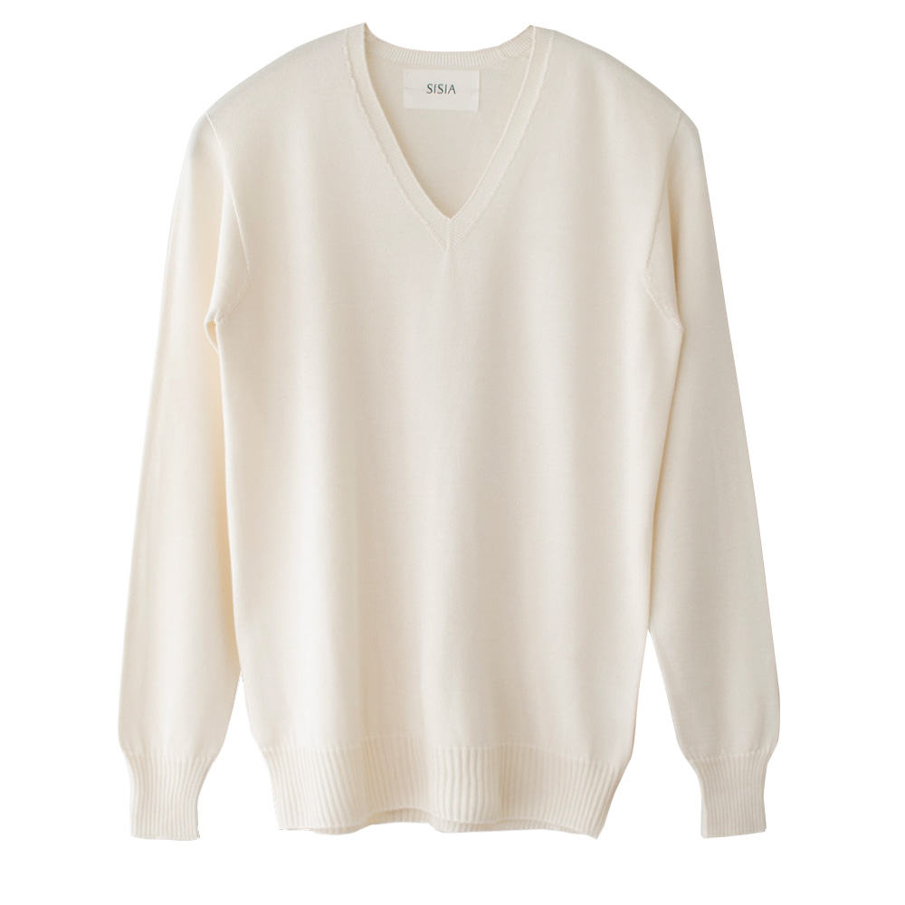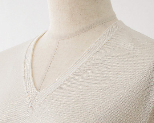 ●最高ランクの絹紡糸を贅沢に使ったシルク100% Vネックニット ●ホールガーメント製法®で、縫い目のないストレスフリーな着心地 ●保温性・保湿性に優れたシルクだから、お肌にしっとりやさしく寄り添います
