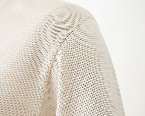 シルクのしっとり感がお肌に馴染む、心地よい肌触り。シルク本来の保温性・保湿性・放湿性と合わさり、幅広いシーズンでお楽しみ頂けます。ホールガーメント製法で編まれているので、着用時のストレスの原因になる繋ぎ目がありません。身体のラインにしっくり馴染み、快適な着心地と自然で立体的なシルエットを叶えてくれます。