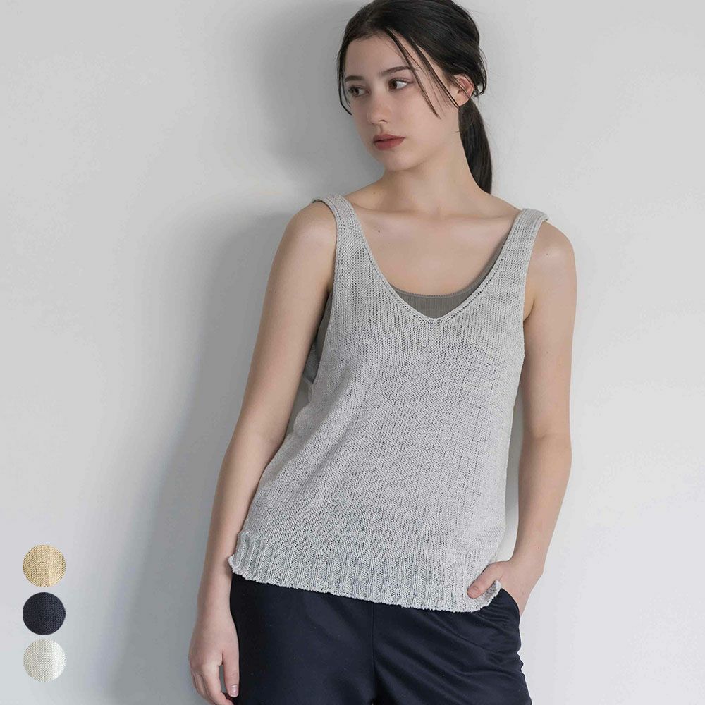 ざっくりと編まれたカジュアルな風合いのニットタンクトップ。リネンのシャリ感は清涼感があり、夏の装いにぴったり。