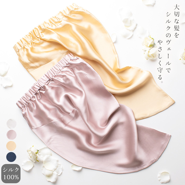 大切な髪を摩擦・乾燥から守ってくれる シルク100% サテン素材のナイトキャップ。 すべすべ、なめらかしっとりの肌触りがとっても贅沢です。 すっぽりと被って寝るだけの簡単ヘアケア♪ おやすみの間の乾燥や乱れを防ぎ、潤い美髪へ導いてくれます。 シルクで頭部を覆うから、冷え性の方にもおすすめできるアイテム。 調湿効果のあるシルクですから、就寝中の汗を吸収・放湿し、 ムレ・湿気がこもらず快適に過ごせます。 また、保湿性にも優れたシルクですから、頭皮・髪の乾燥を防ぎます。 シルクは人間のお肌に近いタンパク質でできていますから、 髪や地肌が敏感な方でも安心してご着用いただけます。 薄くて軽い質感ですからおやすみの間もストレスフリー。 睡眠を妨げません。