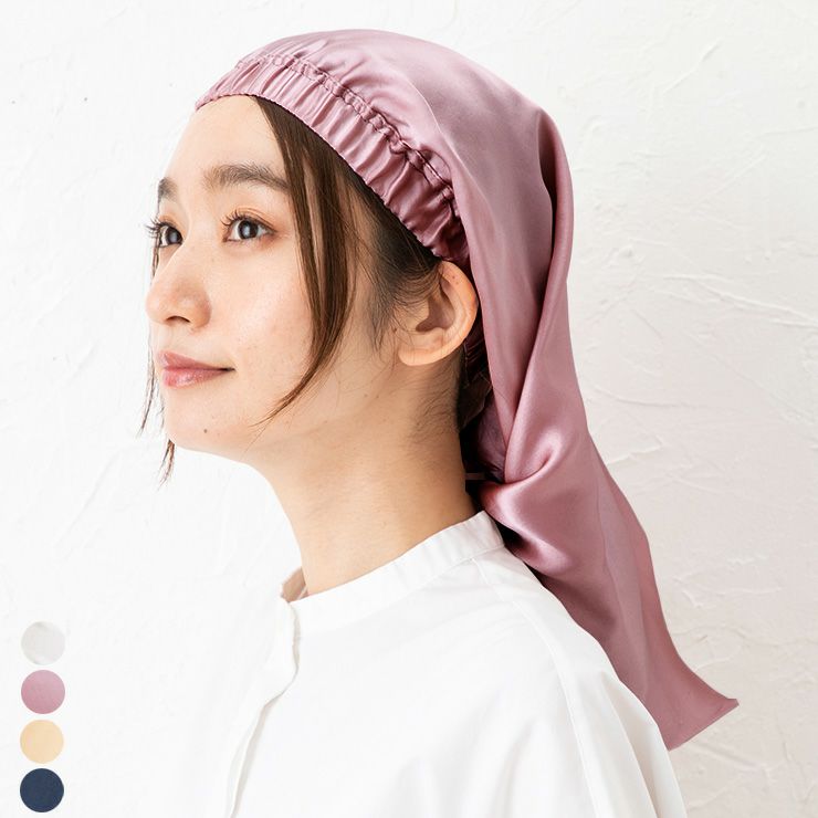 大切な髪を摩擦・乾燥から守ってくれるシルク100% サテン素材のナイトキャップ。