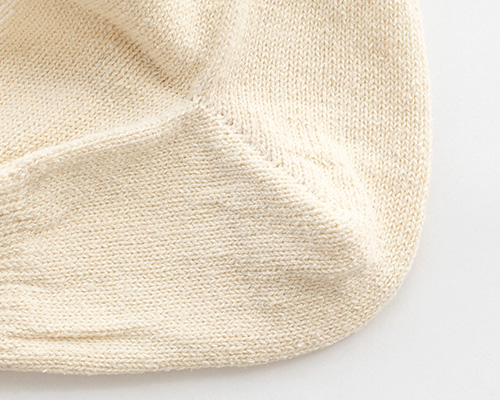 シルクは保湿力で乾燥から肌を守り、吸湿・放湿性に優れているため汗や水分を吸収して放出するので嫌なべとつき感がなく指先はいつもサラサラ。足から発生する嫌な臭いやムレを抑えて清潔さを保ちます。ぽつぽつと節のある素朴なシルク生地を使用しています。ナチュラルで優しい肌触り。