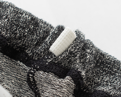 表側は綿と麻の混紡糸、肌面はシルク100%の編地です。表側は少しシャリ感がある柔らかい肌触り。肌側シルクが汗やムレをすばやく吸収し、表の綿麻に発散させることで汗ばむ季節も快適に着用できます。ベタつきやすい素肌を快適に保ち、いつでもサラサラで気持ちよい履き心地です。