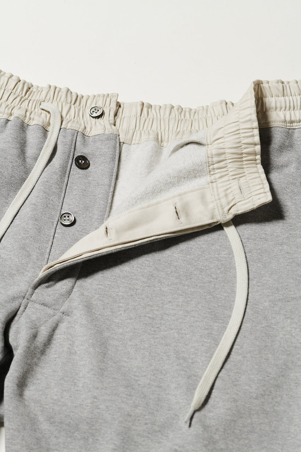 数年かけて開発したブランドのオリジナル素材。軽くて、温かく、肌触りがいいという機能だけでなく、環境や人も優しい素材です。表面は、コットン100%なので、面構えはいわゆるスウェット地。ただし、特殊な紡ぎ方により、羽毛が少なく、毛玉が発生しづらい上に、洗濯による型崩れもしにくいという生地になっています。裏面は、シルク100%。温かい、吸放湿性が高いというシルクの機能を、肌に接する裏面に活かしたことで、服が体温調節をしてくれるような、コンフォートウェアに。