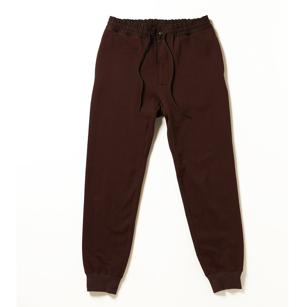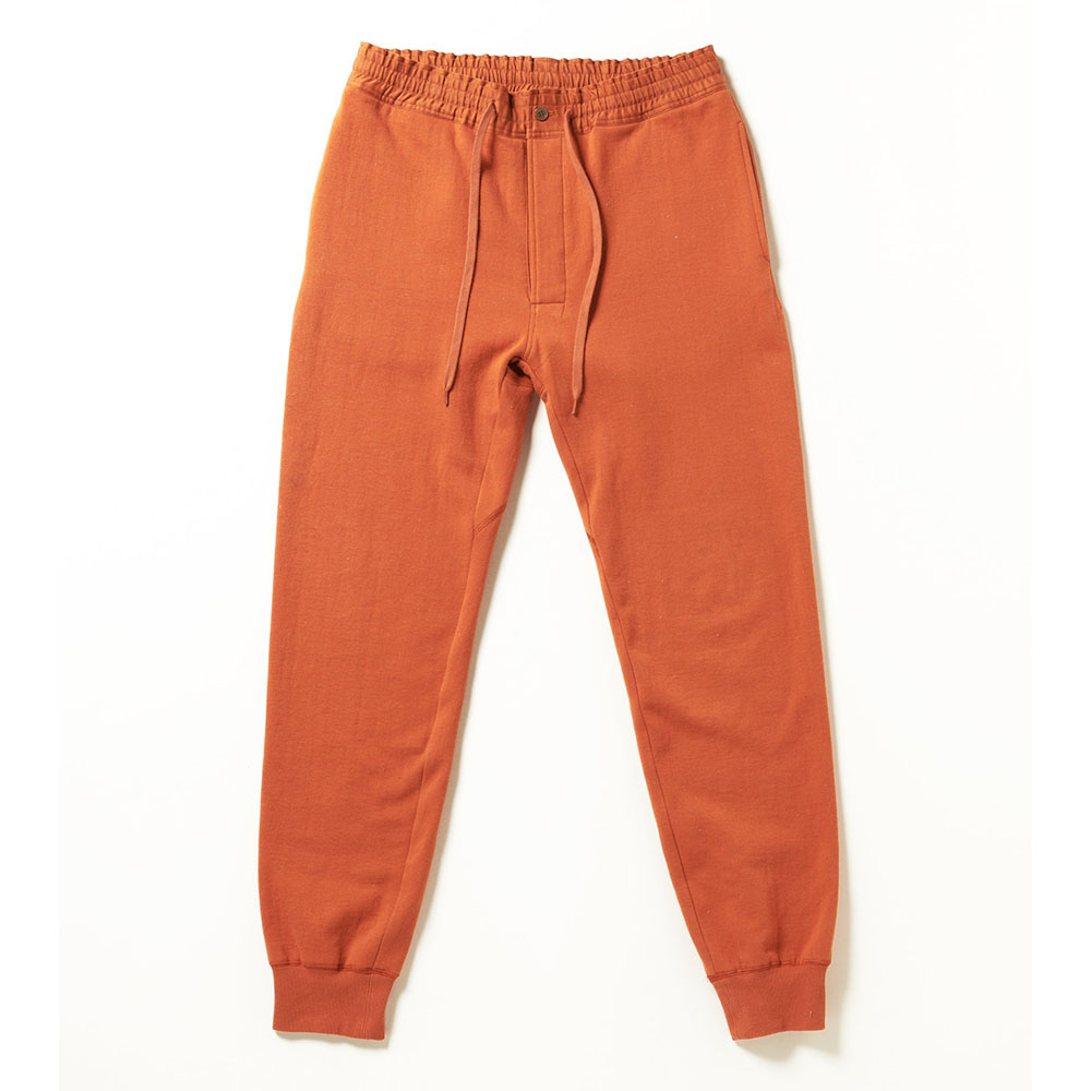 しっかりコシがあるから美しい。だらしなくないジェンツのスェットパンツです。シルク100%の裏毛につつまれる幸せ。外はカリッと、中はしっとり。まるでアルデンテのようなスェット生地を開発しました。肌に触れるのは起毛した100%シルクの裏毛。保温性の高さはもちろんのこと、着心地はやわらかでふかふか。表側になるのは、コットンのMVS糸。綿を圧縮空気の旋回によって紡績しているため、ケバが立ちにくくしっかりとしたコシ感。ウェストマークには高密度に織りこまれたコットンを採用。ベルトがなくてもだらしない印象一切なし。ヒップ上部から大胆に3パーツで仕上げた股ガゼットにより、足運びをスムースにするだけでなく、もたつかない美しいヒップラインを実現しました。