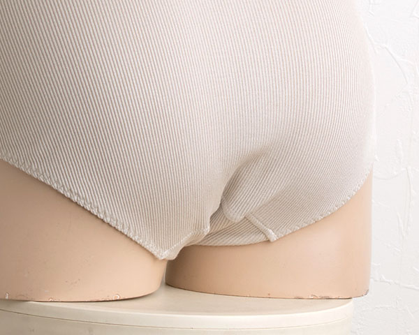 デイリーに履きやすいすっきりスタンダードな形のシルク コットン ショーツ。 フロントからマチにかけて生地を2重にしているので透けにくいデザインに。 すっぽりとヒップを覆ってくれる安心の履き心地です。 ウエスト・足繰りのゴムはお肌に当たらないようシルクコットン生地で包んでいます。