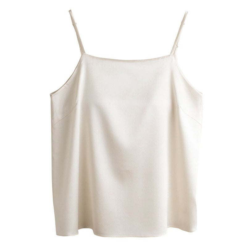 ●ブラとインナーがコレ一枚でOK。フラットなネックラインで着回しやすいシルク ブラトップ インナー ●上品な光沢&さらりと軽やかな着心地の高級シルクサテン19匁素材で仕立てました ●カップ布&アンダーゴムが一周通っているから程よい安定感のある着心地に