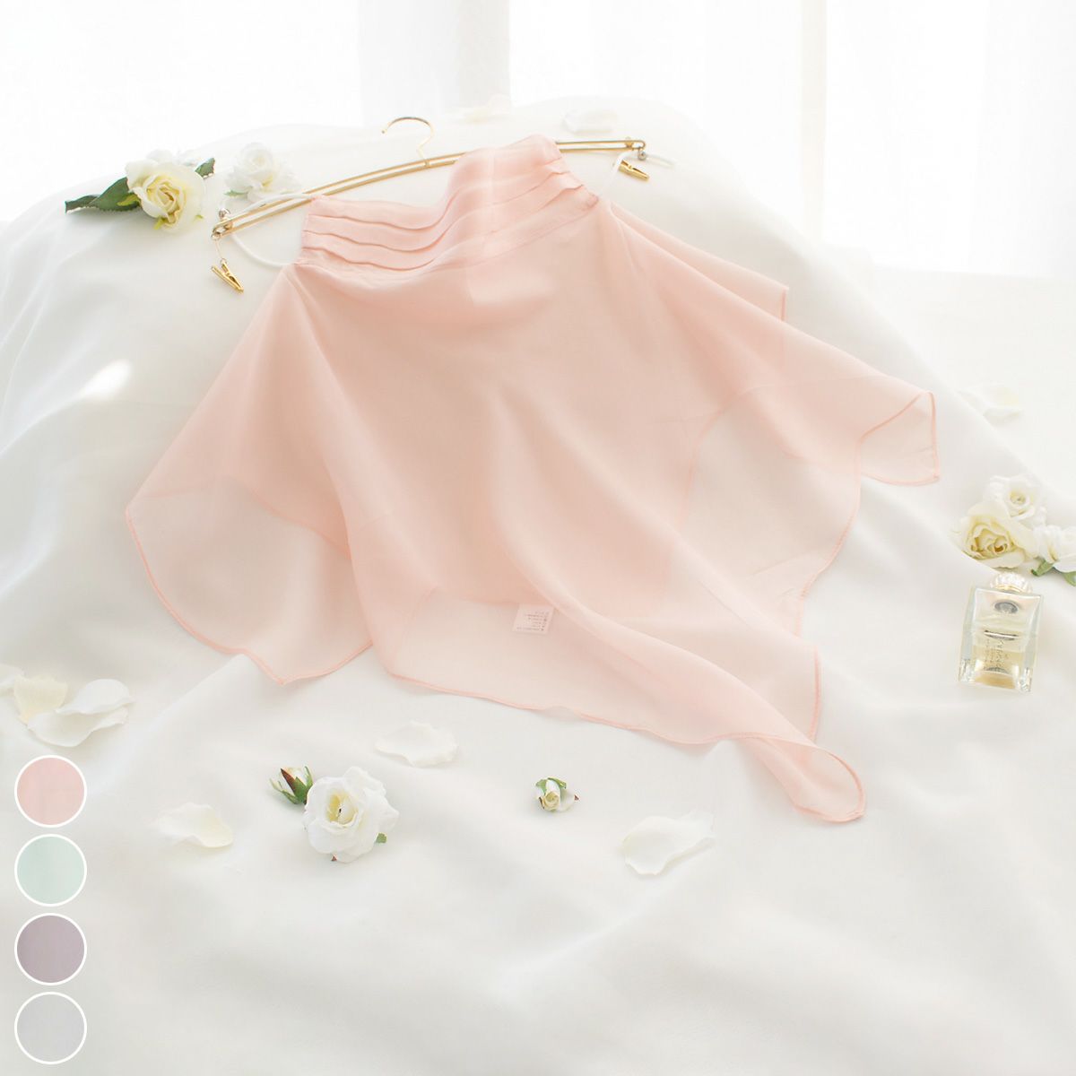 マスク部分:約14cm(プリーツを伸ばした状態)×22cm スカーフ部分:約50×50cm ※平置き実寸サイズです。 ※デリケートな素材を使用しておりますので、商品によって仕上がりサイズに多少の差がございます。予めご了承くださいませ。