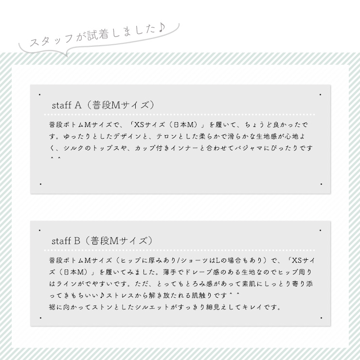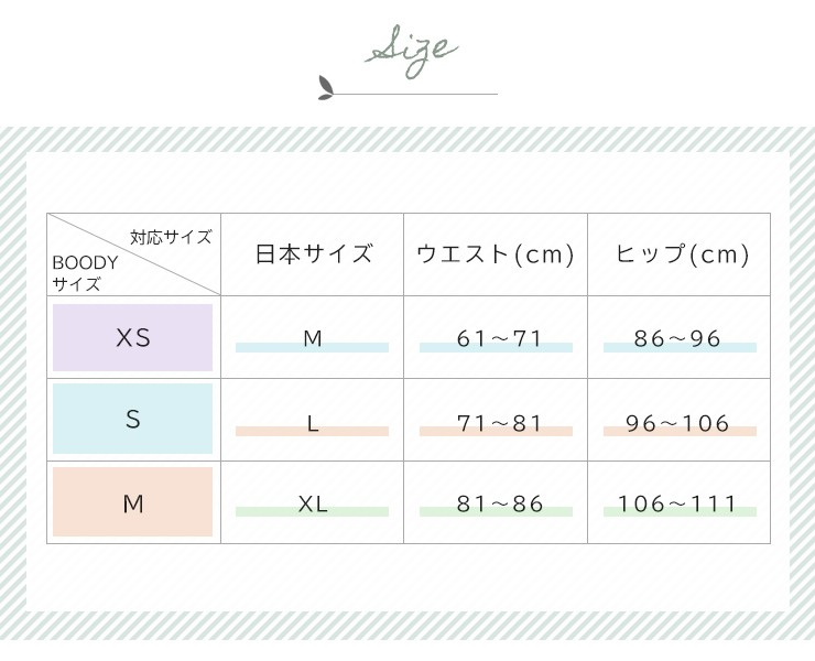 ◇XS(日本M) 対応ウエスト61-71cm 対応ヒップ86-96cm ウエストゴム(×2):72cm 総丈:100cm 股下:73cm ◇S(日本L) 対応ウエスト71-81cm 対応ヒップ96-106cm ウエストゴム(×2):76cm 総丈:100cm 股下:73cm ◇M(日本XL) 対応ウエスト81-86cm 対応ヒップ106-116cm ウエストゴム(×2):82cm 総丈:100cm 股下:73cm