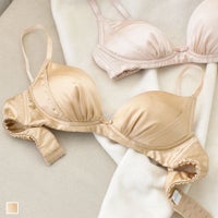 ●副資材以外、オールシルクで作られたシルクノンワイヤーブラジャー。 ●楽な付け心地なのに、立体的なカップでしっかり谷間メイク! ●すべやかな肌触りのシルクサテンで一年中蒸れずに快適。