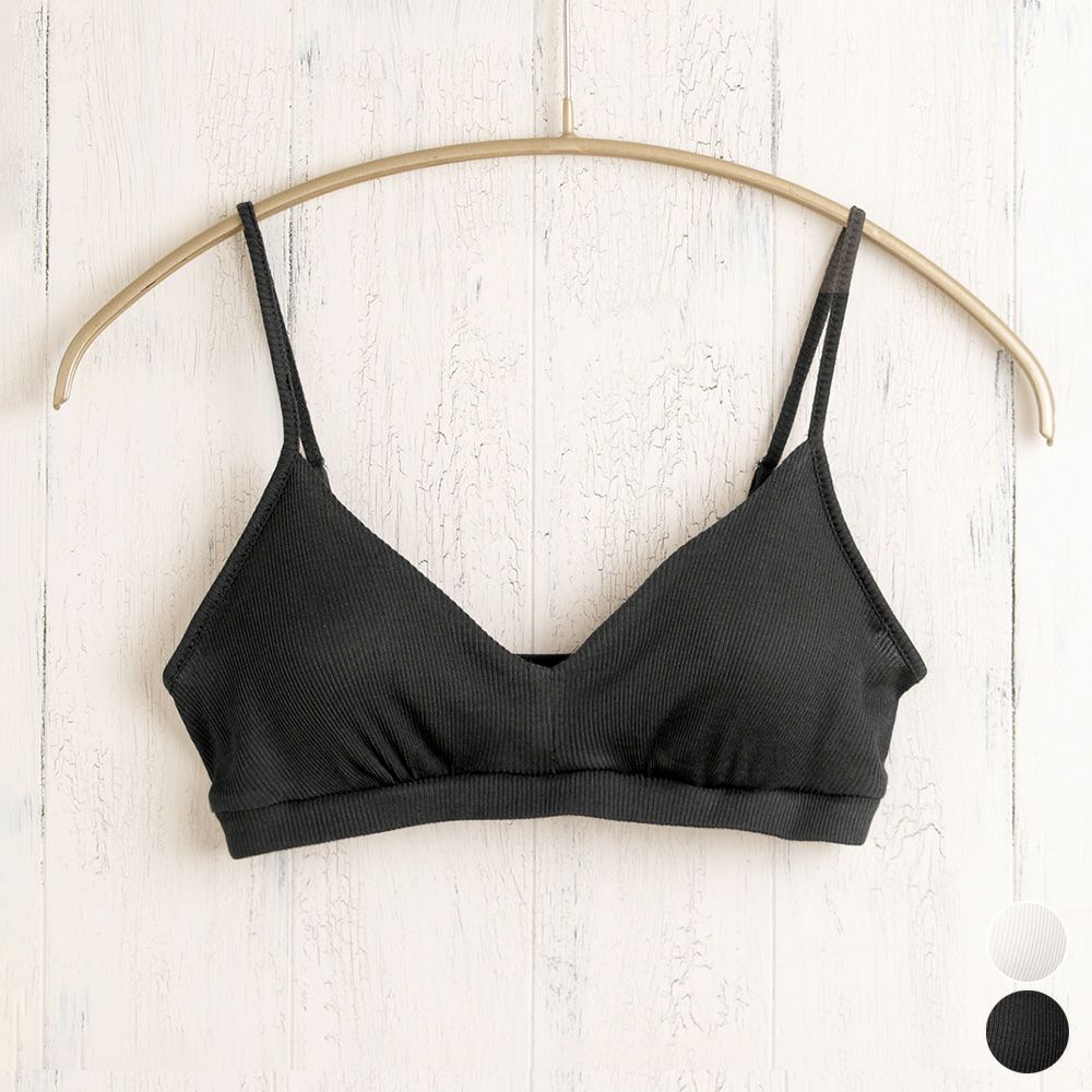 すっきりシンプルなノンワイヤーブラジャー。 軽やかに伸びるテレコ素材だから身体の動きに合わせて柔らかくなじんでくれます。 取り外し可能な三角パッドはナチュラルできれいなバストラインに。 アンダーは薄手の柔らかなストレッチテープを使用し締め付けのない楽な着用感。 ホックなしで、被ってお召し頂くタイプです。
