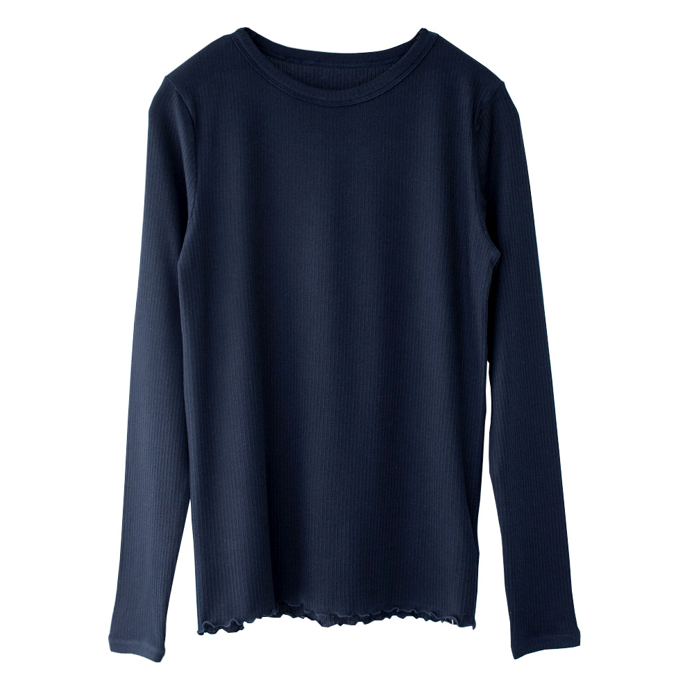 とろんとした生地感が気持ちの良いインナートップス。伸びがとても良いので窮屈感がありません。ぴったりしすぎず、緩すぎないちょうどいいフィット感が心地よく、インナーとしても一枚でも着回しのきく一枚です。