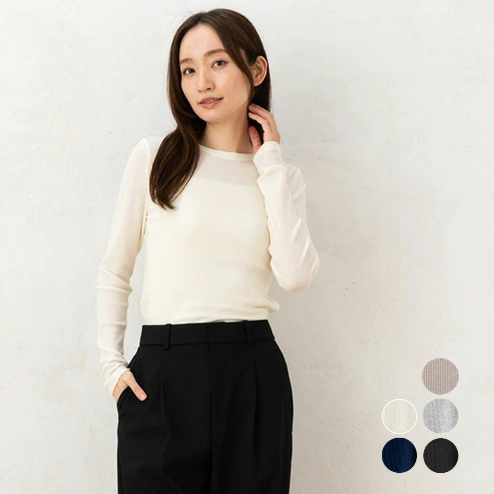 伸び良い生地で、締め付けない柔らかなフィット感。 かといってゆるすぎず洗練された印象になる絶妙なシルエットです。 ※【エクリュ】は若干シアー感(透け感)があります。