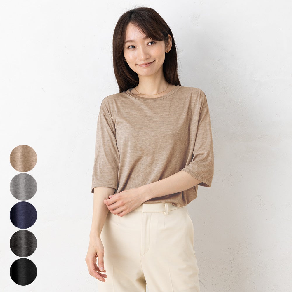 シルク100% ジャージー クルーネック 5分袖トップス 日本製
