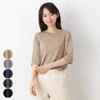 ゆったり楽に着られる五分袖トップス。身体のラインを拾いすぎない身頃と、二の腕を覆う程よい袖丈で体型カバーもばっちり。シンプル&ベーシックな形で着回しやすいトップスです。 少し透け感があるので、アウターとして着用される場合、インナーを重ねられると安心です。