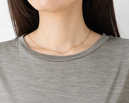艶っぽいシルクとは異なり、アウターにも使われているカジュアルな質感で、控えめな光沢感が上品。シルク生地のなかでも比較的毛玉になりにくい素材です。