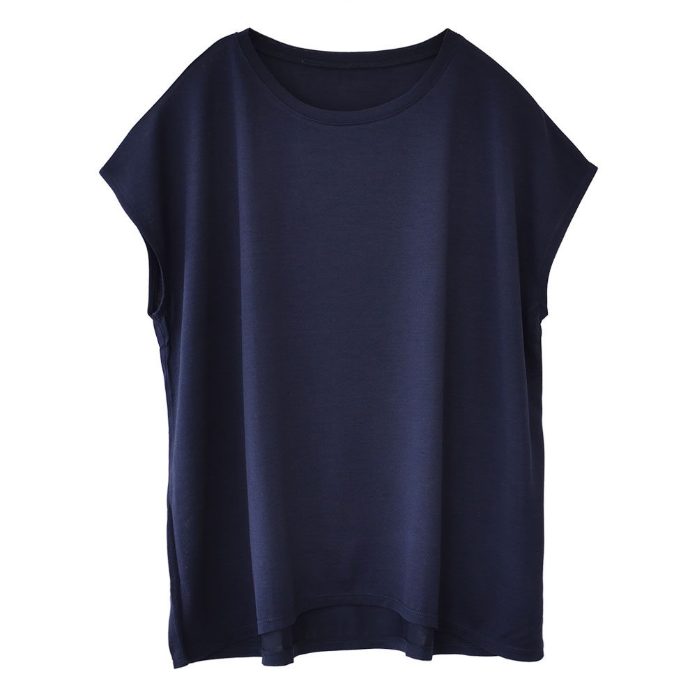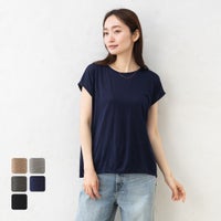 身幅をゆったりとって楽に着られるトップス。半袖よりすっきり見えするフレンチ袖デザインで、風通しよく涼しくお過ごし頂けます。