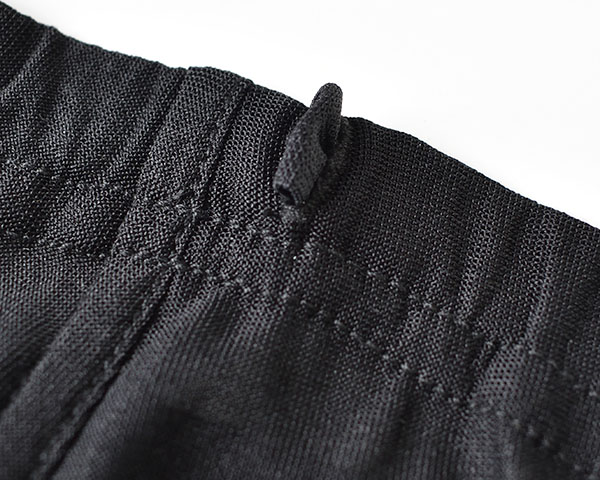 以前のスムース編みに比べると、天竺編みの方がさらりとした 肌触りです。それでも、さすが正絹。しっとりと弾力があり 足を通すと気持ちいい~。お腹も締め付けがなく楽ちんです! 肌が透けるくらいの薄手なので、季節を問わずに穿けそうです。 ※2022年9月から生地がスムース編みから天竺編みへ変更になりました