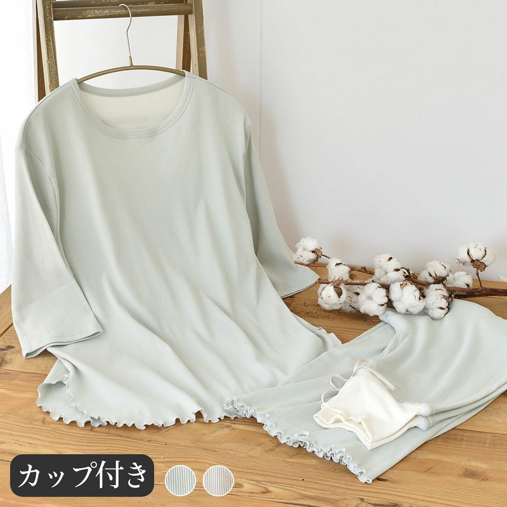 ブラジャー要らずの楽ちんカップ付きで、締め付けから解放~。ゆとりのあるリラックスした着心地です。