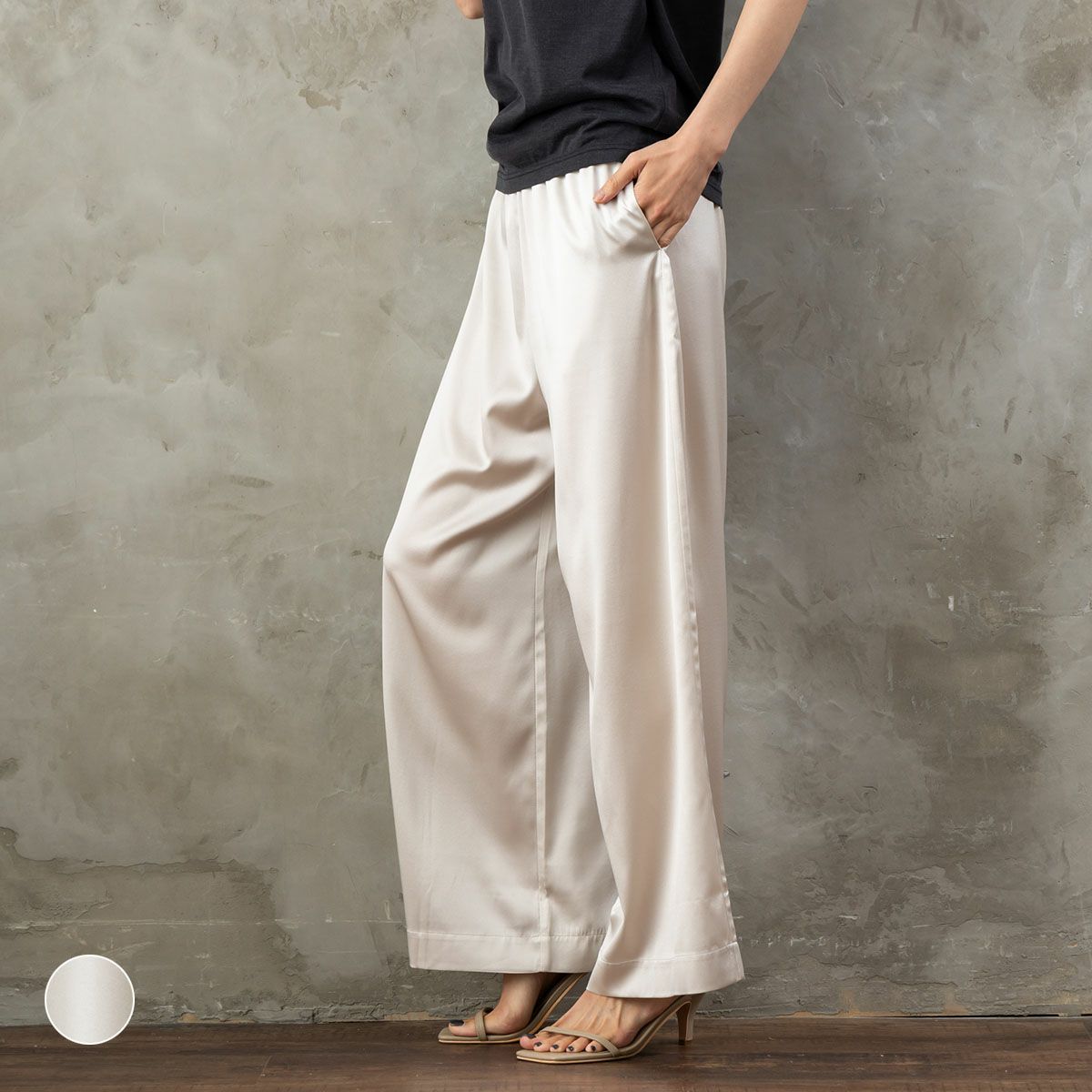 美しい光沢感のあるシルクで叶える ワンランクアップの上品コーデ 【お得な上下セット】シルク サテンストレッチ トップス&スカート 上下セット 日本製 19匁 ¥ 37,290 税込 お気に入りに登録する