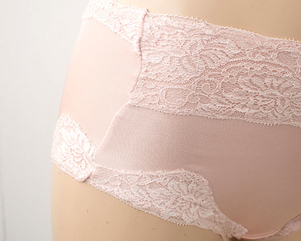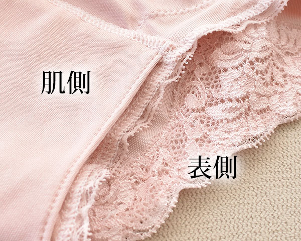 素肌が喜ぶしっとりすべすべの肌触り、極上リラックスな着用感。レースを施し、ほんのり甘めに仕上げました。肌触りが柔らかく、着けていることを忘れるほどのストレスフリーな履き心地です。