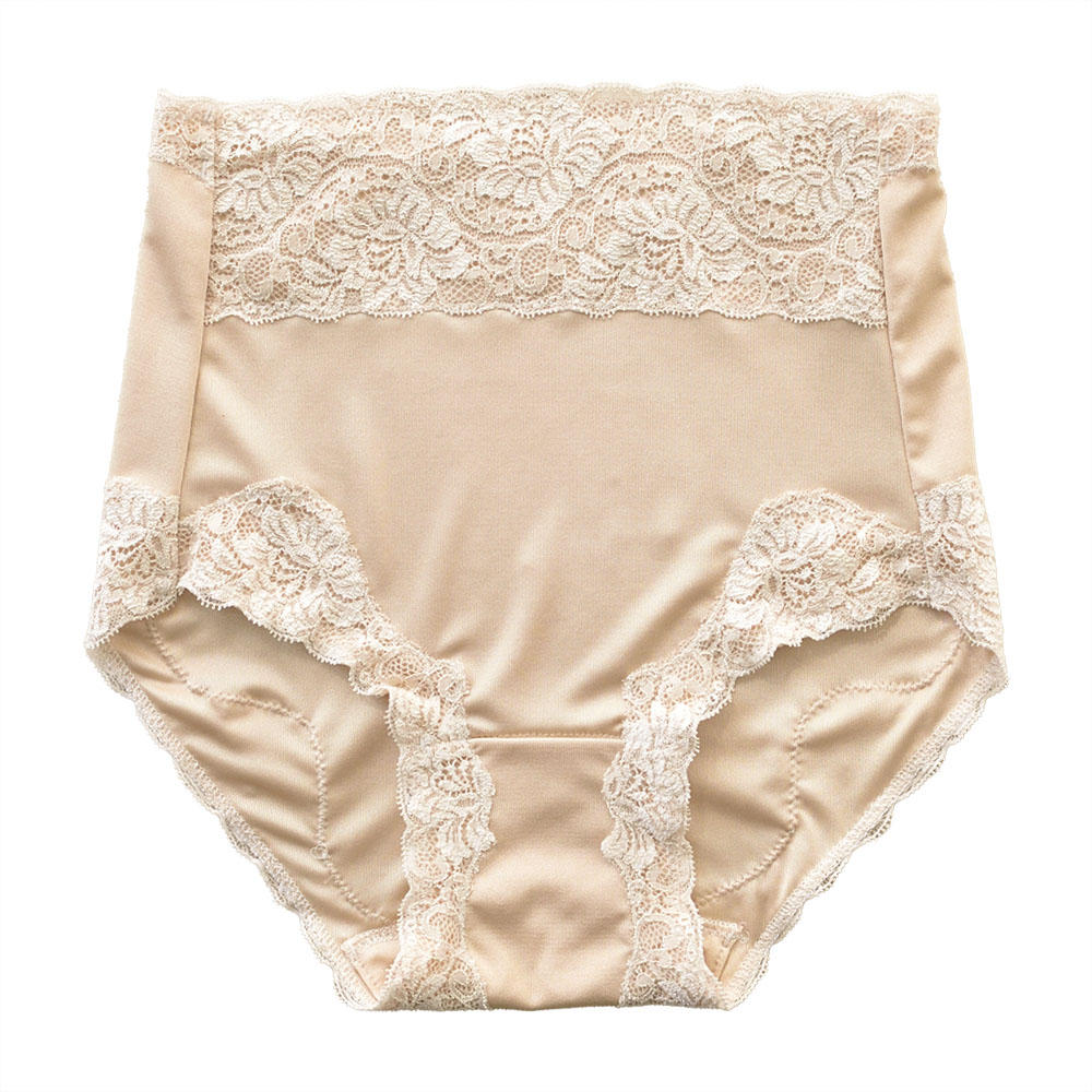 へそ下までの、安定感のある深履きタイプです。ウエスト・足繰り周りにゴムを使用していないため、軽い着用感です。