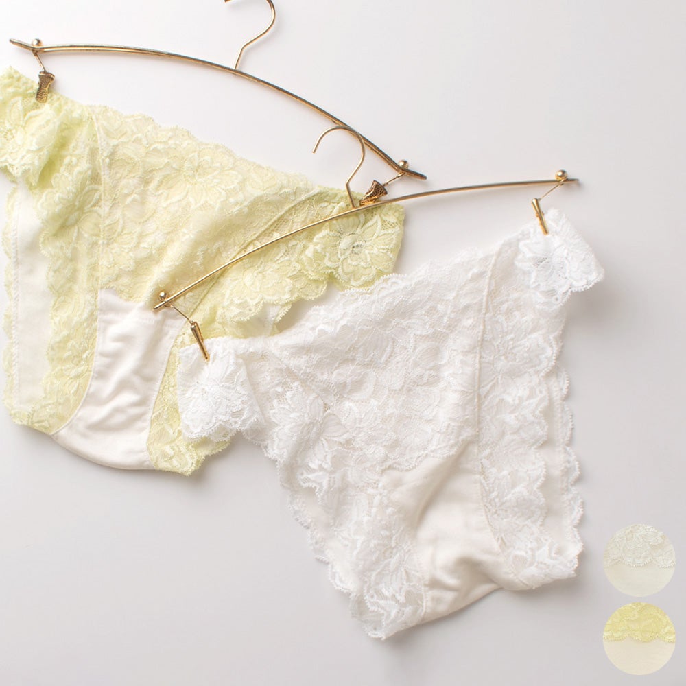 ふんわりとソフトなシルク生地で軽やかに仕上げた、シルクショーツ。シルク100%の生地に、繊細なレースを施した、乙女心をくすぐる大人可愛いデザイン。足繰りにはゴムを通しておらず、食い込みにくく軽い履き心地。また、しっとりと滑らかなシルクの肌触りが心地よく、快適にお召し頂けます。マチ部分にはナプキンの羽を挟める仕立てで、サニタリーショーツとしても。素材と着心地の良さが評判のブランド「Shalom シャローム」とのコラボ商品です。