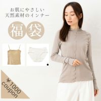 オーガニックコットン100% まるで赤ちゃんの肌着のように柔らかくて優しい肌触りの長袖インナーと、 ブラの要らないインナーキャミソールとして着回せるカップ裏シルクのブラトップ、 デイリー使いにぴったりのスタンダードショーツ、 お肌に優しい天然素材のインナー3点に 次回使える1000円クーポン券がはいるお得な福袋が登場です!