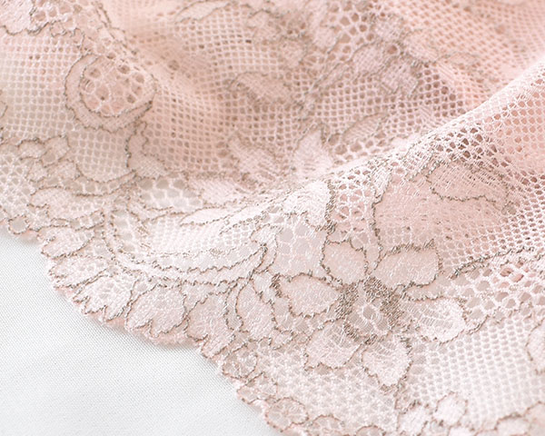 フロントはすべすべのシルクサテンで仕立て、ほんのり艶感が美しい。ヒップ側は中央がシルクサテン、サイドからヒップにかけてレース仕立てで透け感があり、レース本来の美しさを堪能できます。アウターにも響きにくく、タイトなパンツスタイルもきれいに着こなせます。
