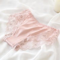 ●フロントからマチ~ヒップ側中央にシルクサテンを使い、お肌に優しいさらりとした肌触り ●レース×シルクサテンのラグジュアリーなデザイン ●足繰りにストレッチレースを施しているからアウターに響きにくい