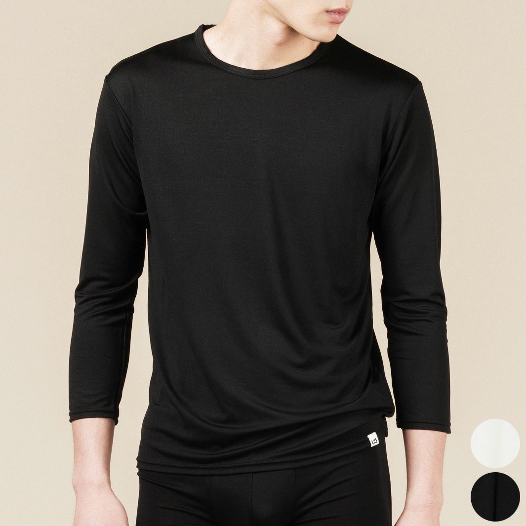 【予約】LOOKSEA 肌側シルク スムース クルーネック 長袖 Tシャツ 日本製 メンズ