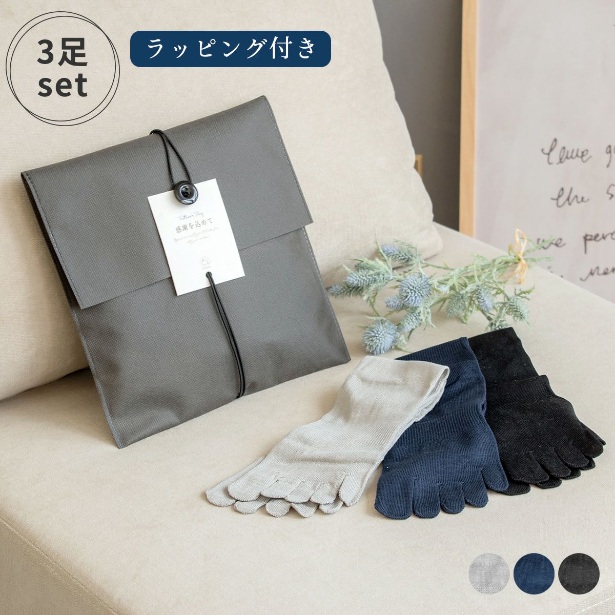 ラッピング付き メンズ シルク 5本指 靴下 3足セット ハイゲージ 紳士用 選べるメッセージ