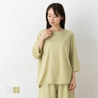 ●植物由来の機能繊維「curefilo」を使用した『リラクシングウェア』 ●繊維の持つリラクゼーション効果で、ゆったりとくつろげる7分袖Tシャツ ●コットンのやさしい風合いにレーヨン特有のとろみ感があわさり、ソフトで滑らかな肌触り