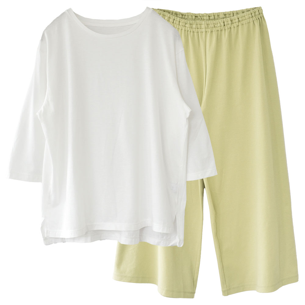 【トップス】コットン57%、レーヨン43%(天竺編み) 【パンツ】コットン90%、レーヨン10%(スムース編み)