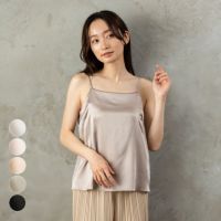 上品な光沢感と美しいドレープを持つシルクサテン素材で仕立てたカップ付きキャミソール。フラットなネックラインで一枚でも着やすいブラトップは、ブラジャーの締め付けから開放される、リラクシーな着心地に。すべりがよいシルクサテン素材は薄手で軽やか、さらりと一枚で上品魅せしてくれる、大人のブラキャミソールです。