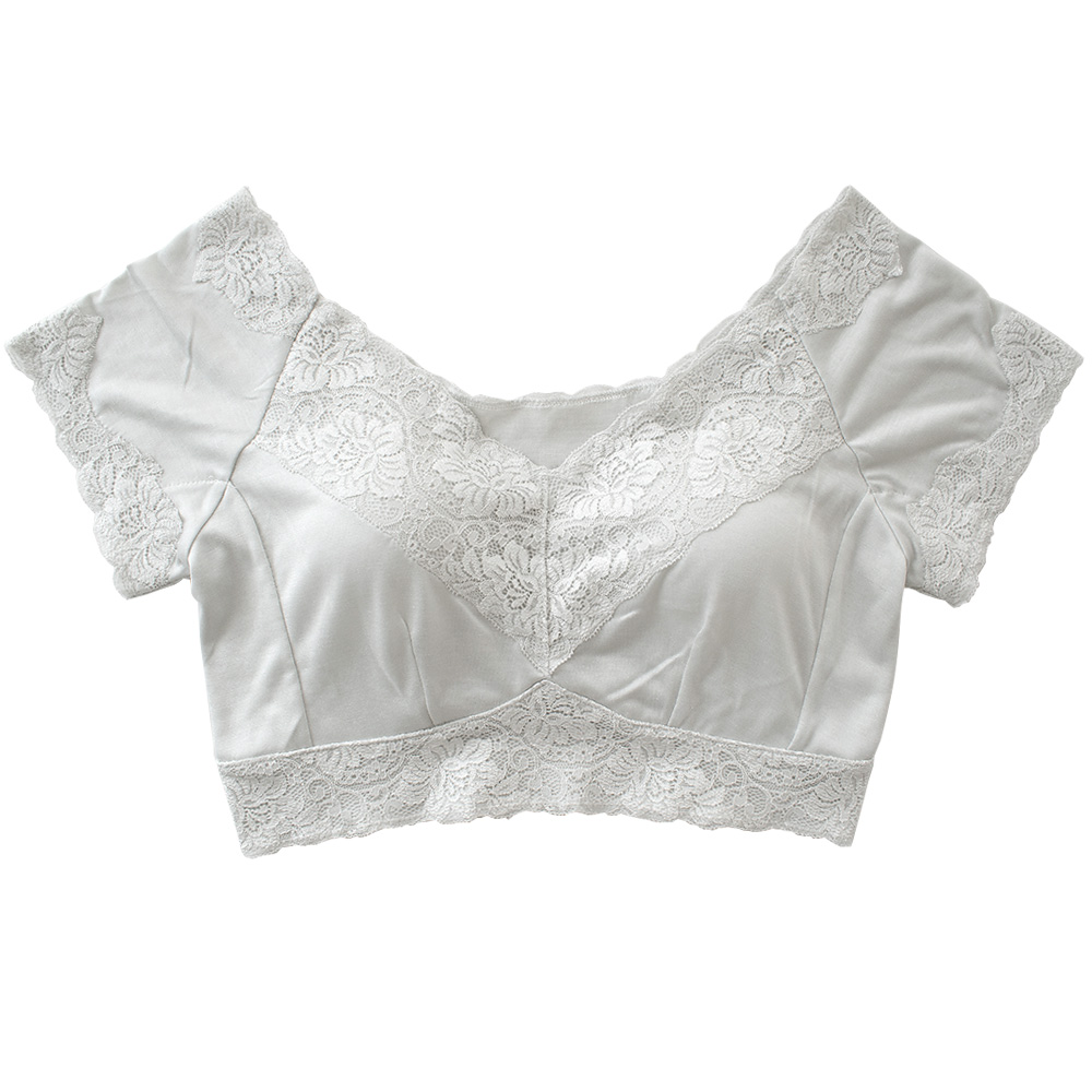 お休み用としてもインナーとしても使える便利なハーフトップタイプのインナー。お肌に当たる面にシルク100%生地を裏打ちしてあるのでデリケート肌さんも安心してご着用いただけます。アンダーにゴムを使用せず、柔らかなフィット感で身体に優しく寄り添うような着用感。