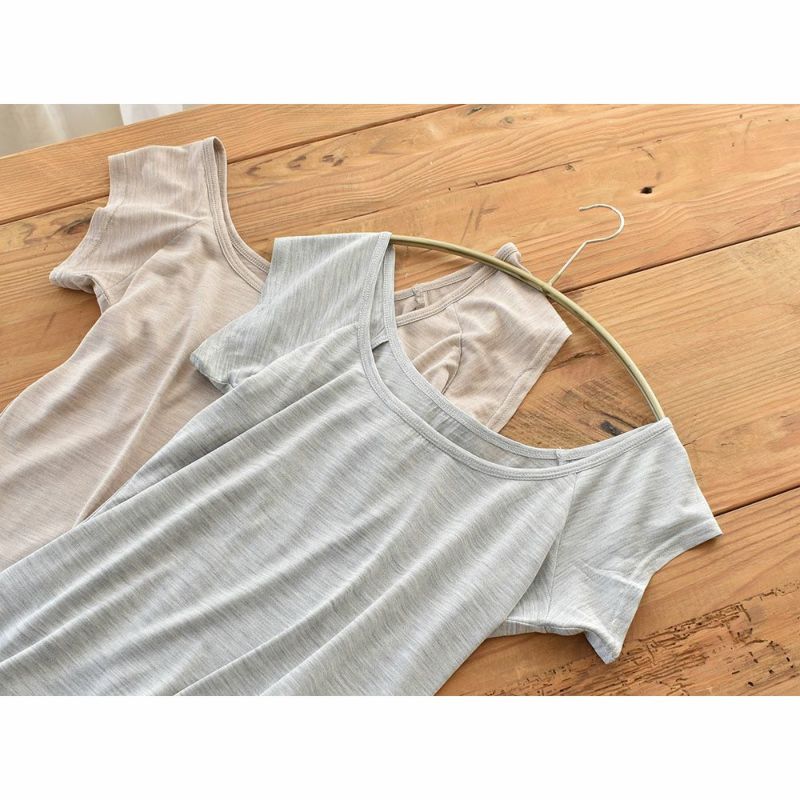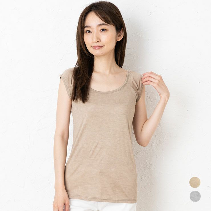 インナーとして着てチラ見えしても、 汗取りの下着には見えないおしゃれでシンプルなデザイン。 キャミソールより安定感のあるフレンチ袖は、半袖ほどもたつかず、 重ね着してもアウターに響きにくい。