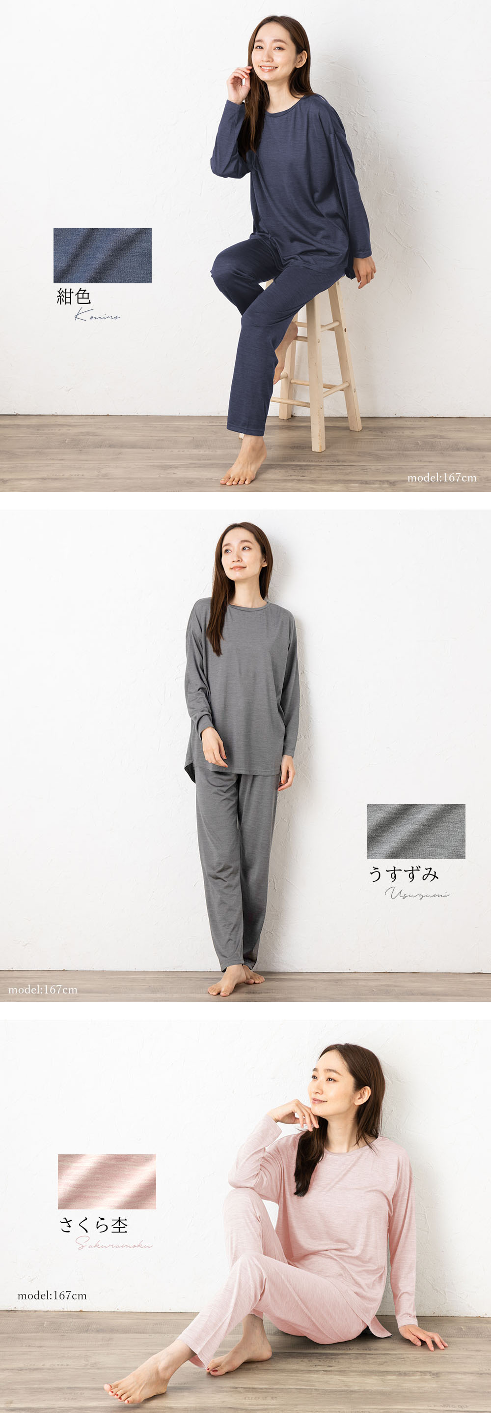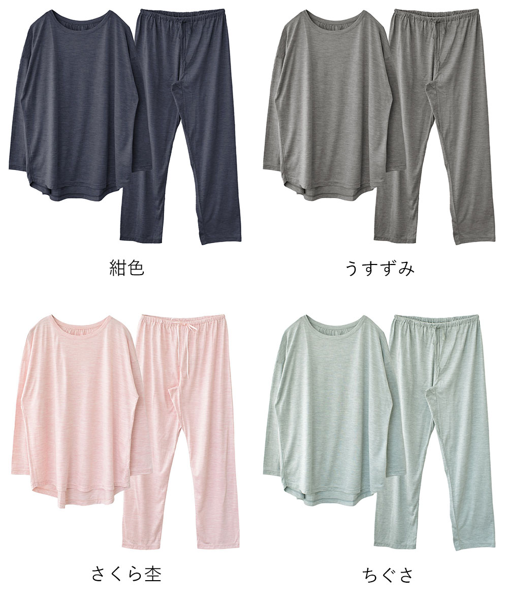 ●お肌に溶け込むようなシルク100%ソフトジャージー素材 ●ふんわりと風を纏う、軽やかな着心地。滑らかな肌触りで、お肌にも心地よいシルク パジャマ ●汗やムレをさっと吸い取り発散させるから、汗ばむ季節やお風呂上りも爽やかな着心地に