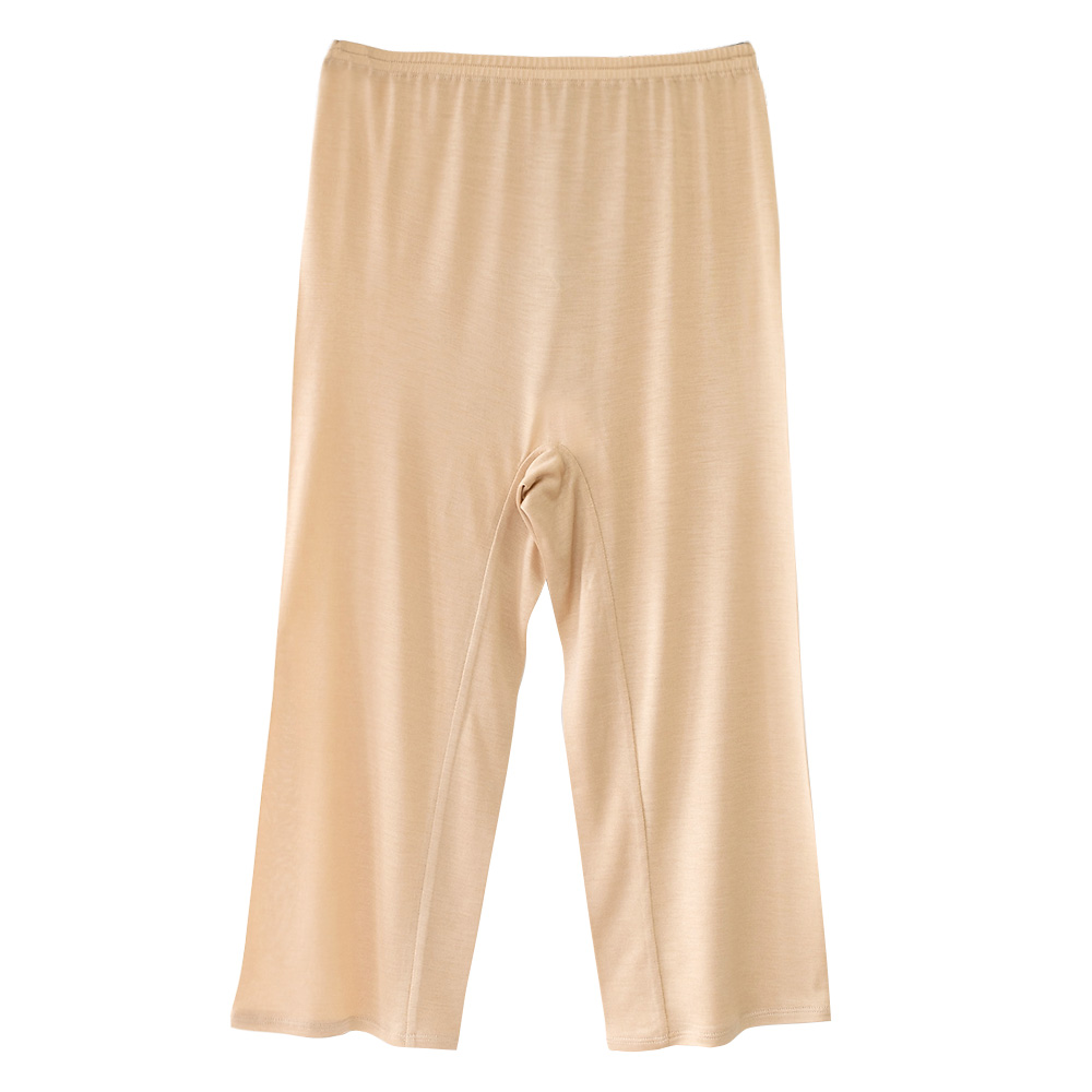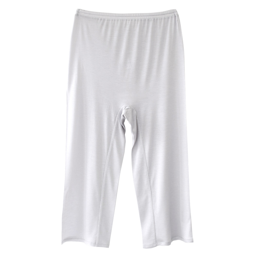 すっきりシンプルなデザインでアウターに響きにくいシルク 7分丈パンツ。太もも~膝裏の汗まで広い範囲をカバーしてくれます。腰周りが細身のお作りなので、タイトなスカートやパンツのインナーとしても。縫い代を寝かせて肌あたりをよくしたり、ショーツとしてもお召し頂けるよう工夫を凝らしたデザインはイーズオリジナルだからこそできるこだわりの仕様で、機能的に優れたシルク インナーに仕上がりました。透け防止インナーとしてはもちろん、股ずれ対策や、さらに汗取り・冷えとりアイテムとしても活躍してくれる一枚です。