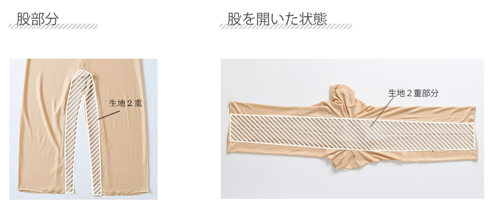 股下から裾にかけてシルク生地を二重にしてあるためショーツの代わりにお召し頂けます。また、汗を吸い取りやすく、股ズレ防止インナーとしてもご使用いただけます。