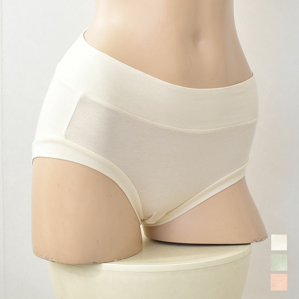 ●オーガニックコットンに伸縮性をもたせた生地を使用し、ゴムを使わずにほどよいフィット感に仕上げたショーツ ●マチ裏はシルク100%でふんわりと滑らかな肌触り ●安心の深履きタイプ