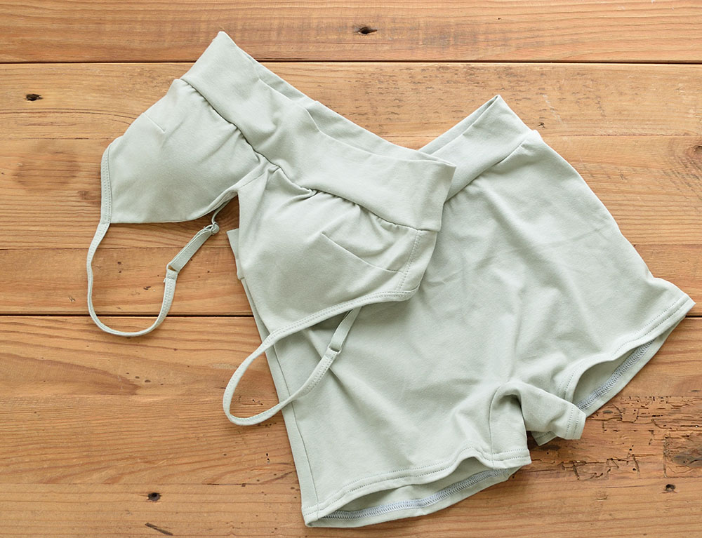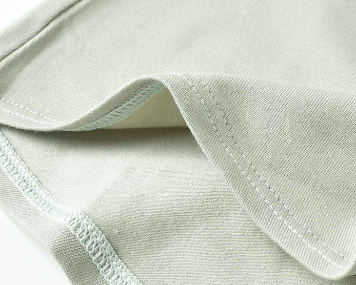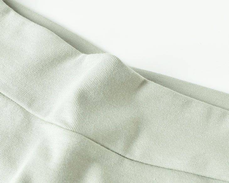 オーガニックコットンに伸縮性をもたせた少しハリのある生地。 透け感はなく、ソフトな肌触りです。