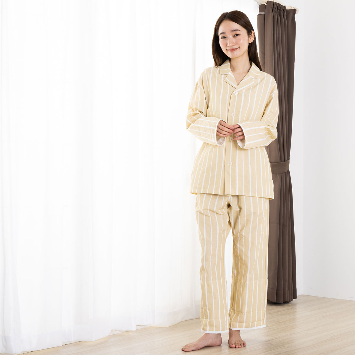 コットンと和紙で仕立てたこだわりのパジャマ上下セット。
